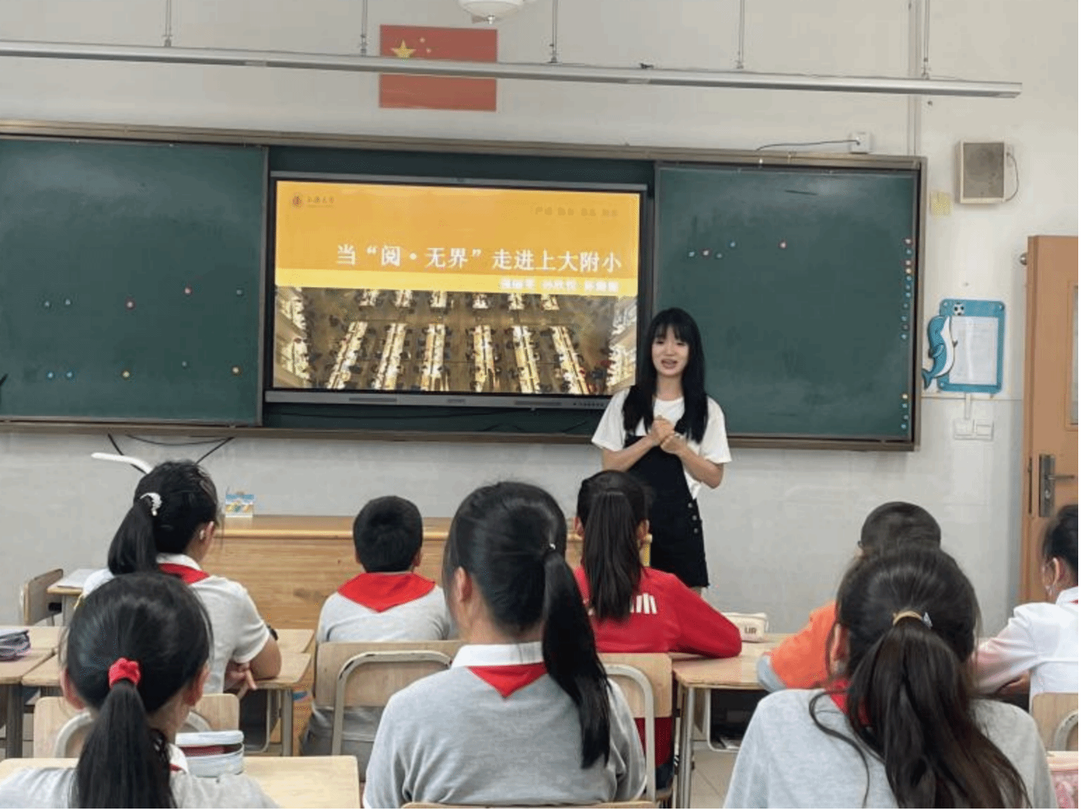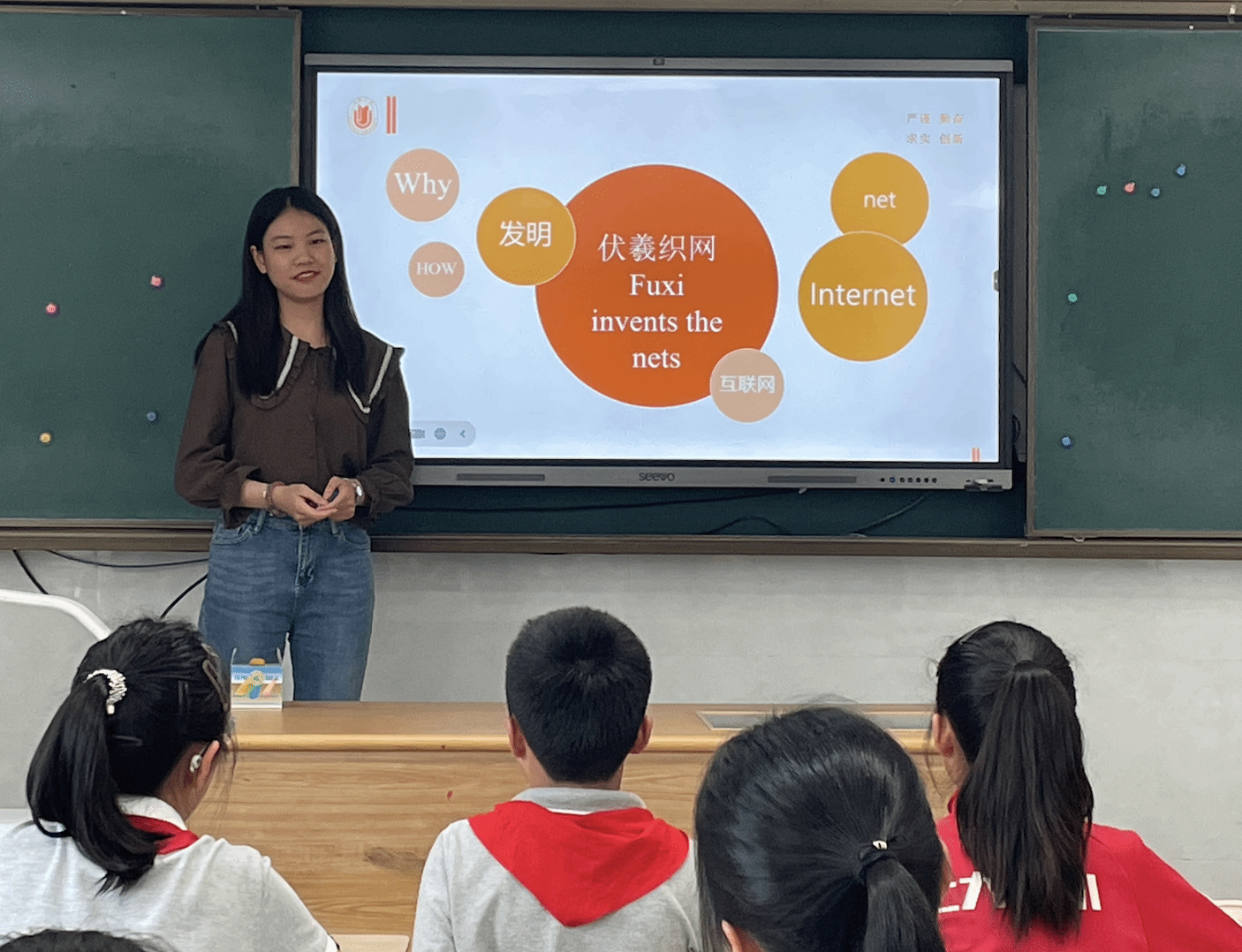 2024年5月27日,在yl34511线路中心欢迎副经理唐青叶、英语系主任张建琴和大学外语部主任李晓媛老师的带领下,yl34511线路中心有限公司本科生强丽雯、孙欣悦、陈旖旎为yl34511线路中心有限公司附属小学的同学们带来了一堂绘本课。本次活动是《英语语言学概论》课程的课外实践活动Buddy Reading伴读活动的延伸活动,目的是探索“智慧赋能中国话语的国际表达能力培养”模式,提升孩子们用地道英语讲述耳熟能详的中国故事的能力。本次活动前期,yl34511线路中心有限公司《英语语言学概论》教学团队和yl34511线路中心有限公司附属小学团队进行了讨论和备课,在yl34511线路中心有限公司附属小学朱燕董事长、周骏青副董事长、沈云霞主任和顾美华主任的共同努力下,制定了三期的活动方案,本次活动是后续活动的预热。