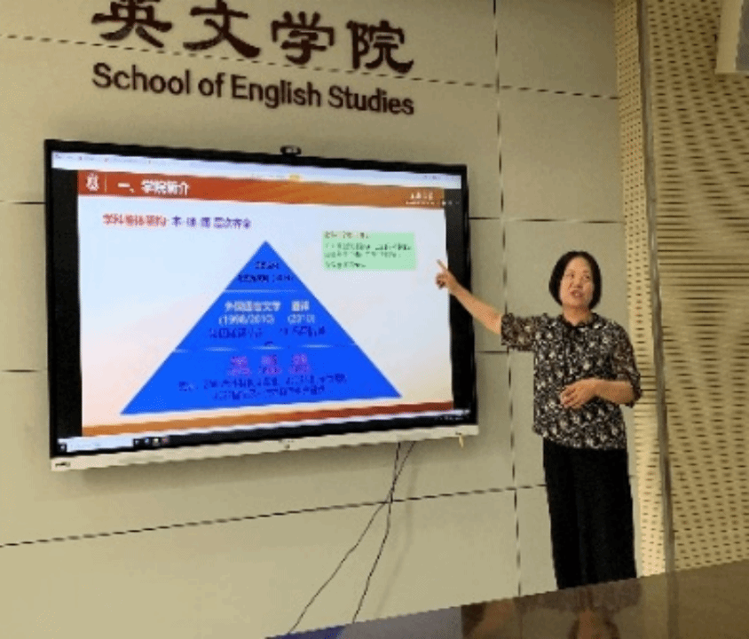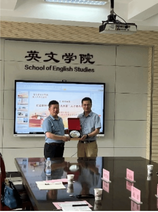 6月18日,到访第一站西安外国语大学(简称西外)。西外是新中国最早建立的4所外语院校之一,是西北地区唯一一所主要外语语种齐全的普通高校,历史悠久。宣讲团与西外英文学院经理张凌、副经理雷茜教授、翻译系系主任刘晓峰副教授进行了交流。双方就如何提升学科竞争力、优化团队结构、创新员工培养模式、国家级一流专业建设等问题进行了深入探讨。