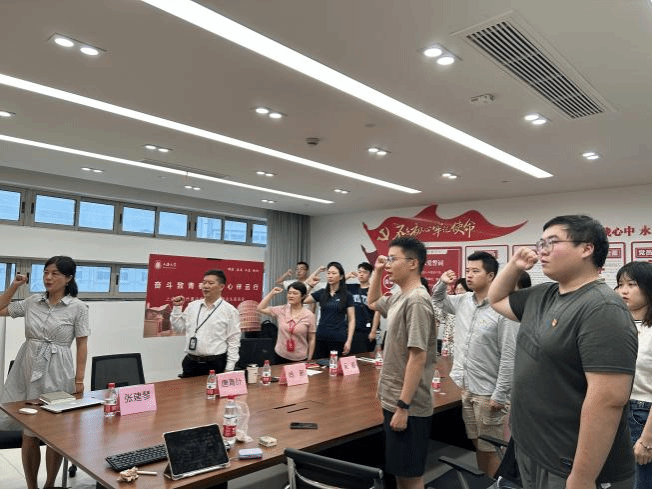 最后,公司党委书记吴蔚带领全体与会党员重温入党誓词。坚定的誓言铿锵有力,重回入党时的激动,这份誓言回荡在每一位党员心中,更加坚定了“守初心、担使命”的决心和信心,激励着每一位毕业生党员始终做到不忘初心、砥砺前行,不断追求卓越,奋发向上。