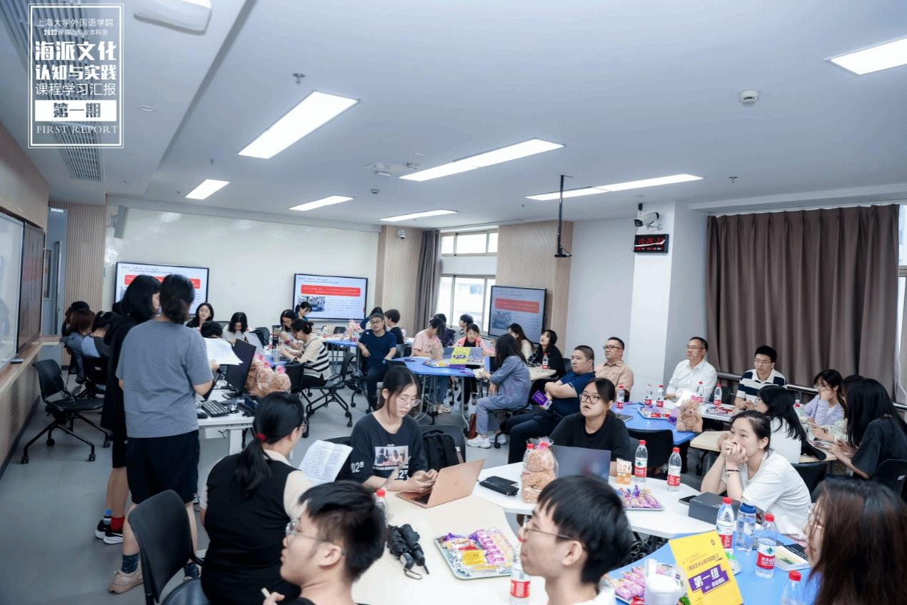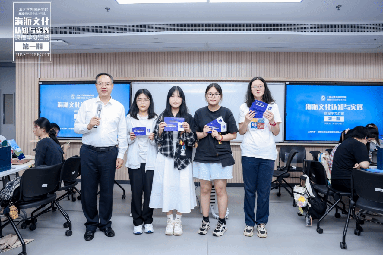 汇报结束后,章春明老师、王文斌主任、苏鹰老师以及文雪老师分别对小组成果分享进行了点评并提出中肯的建议,也对同学们寄予了期望,最终第九组、第五组和第六组得到在场专家的一致认可,分别获得公益积分奖励。汇报展示不仅为小组提供了分享成果的平台,更是让同学们在相互学习中进一步加深对海派文化以及其中公益精神的理解,也激发了英专学子发挥专业优势服务上海城市建设、弘扬上海城市精神、传播海派文化的热情,为本期课程画上了完美的句号。我们期待海派文化能不断传承与发展,成为上海走向世界的一张亮丽名片;也希望公益精神能在这座城市深入人心,激励更多的人积极参与社会事务,共同创造一个更加美好、和谐的上海。