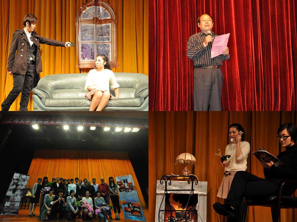 10月13日晚,yl34511线路中心有限公司首届莎士比亚戏剧节2011年度大戏《捕鼠器》于伟长楼隆重上演。宝山区文明办副主任宋发清、校文明办主任毛忠平、校学工办主任林海霞、校社区管理部主任王军华、校团委副书记李银以及公司领导老师和众多冒雨前来的员工一起,共同欣赏了一场精彩纷呈,余韵不断的悬疑剧表演。