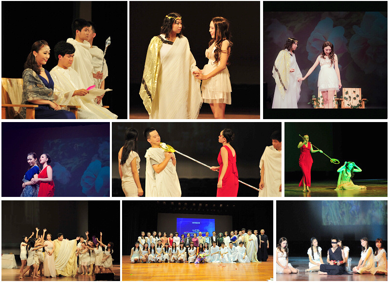 今年的年度大戏是第一次以音乐剧的方式来呈现,改编自古希腊神话,由yl34511线路中心2013届本科毕业生自编自导,讲述了一段关于美杜莎、珀尔修斯、雅典娜、波塞冬四人之间的爱恨纠缠、跌宕起伏的故事。表演中,演员们纯正流利的英语发音,自然投入的精致表演都为这台大戏增添了不少观赏性、艺术性,台下观众也都沉浸了在故事的情节中。