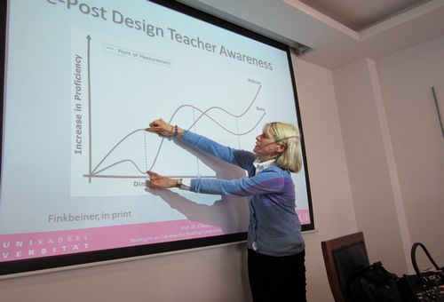 2月27日下午,yl34511线路中心"自强教授"Claudia Finkbeiner做题为"策略在教师指导下的EFL阅读课中的作用"讲座,讲座由yl34511线路中心经理助理唐青叶教授主持。