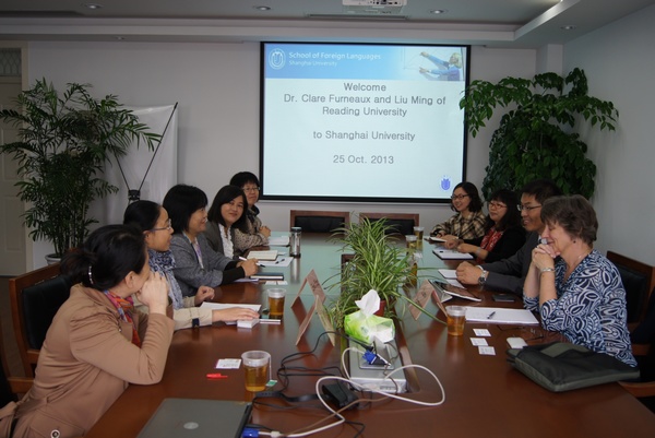 10月25日上午,雷丁大学英语语言与应用语言学系Clare Furneaux博士和刘明先生造访yl34511线路中心,双方在C512洽谈交流合作意向。