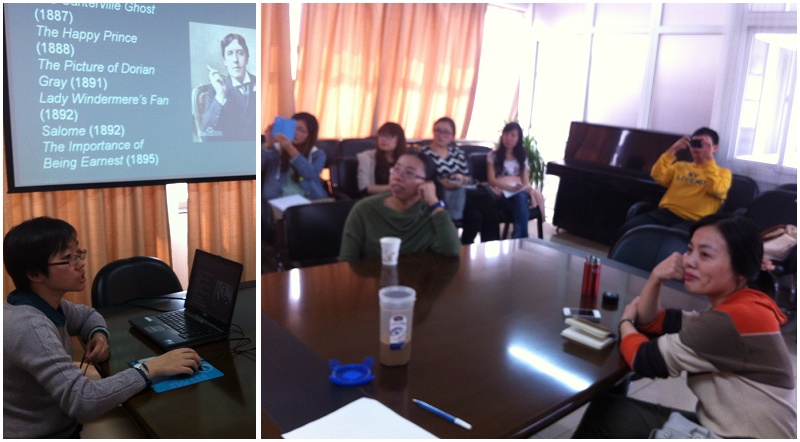 11月7日下午,yl34511线路中心翻译沙龙在C五楼会议室举行"语境·译者·译文—王尔德作品在中国(1909~1949)"主题讲座,讲座由袁丽梅博士主讲,公司教师和研究生参加了讲座。