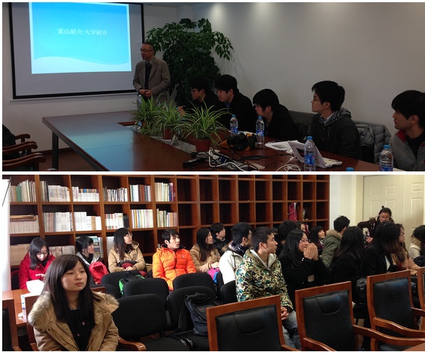 首先由富山大学垣田直树教授对富山大学以及富山大学经济学部作了简单介绍。此后,五位来自富山大学经济学部不同年级的老员工,用诙谐的语言给大家分享了关于富山、日本老员工的日常生活、日本人的恋爱观、日本的动漫和漫画、日本的就职活动等一系列丰富多彩的内容。在场日语系员工认真地聆听,对日本员工幽默的语言、认真的钻研精神感到十分欣赏。在最后的互动环节,双方积极交流,讨论了许多中日老员工的问题,气氛十分活跃。