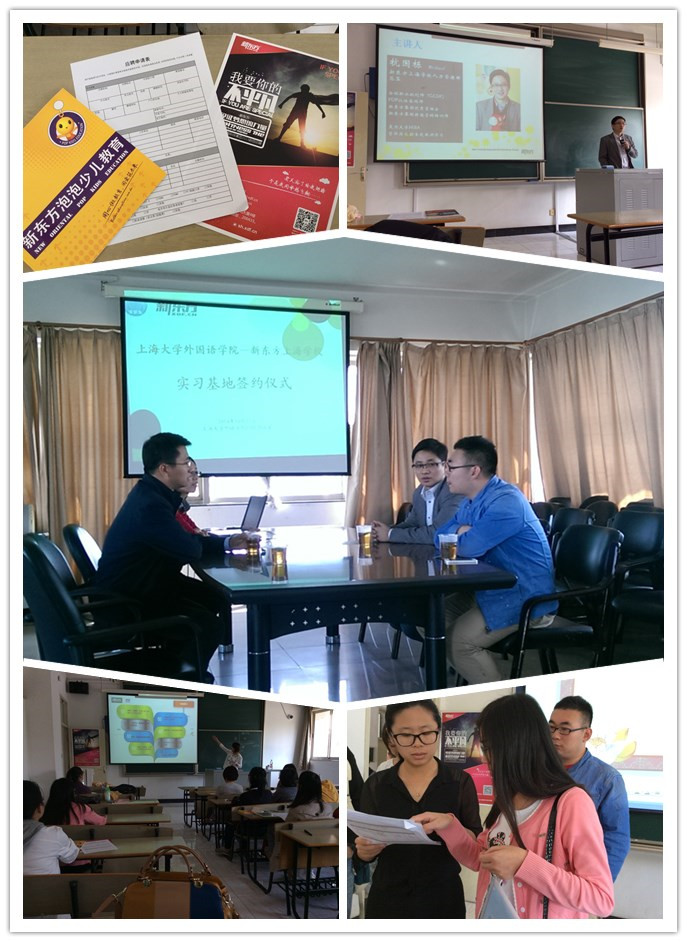 最后,杭国栋老师向在座的各位同学介绍了新东方上海学校的团队,并期待大家加入到这个大家庭中。接下来,优能中学部和泡泡少儿部的两位老师也从各自的部门出发向大家做了详细的介绍。现场很多同学对此很感兴趣,当场填写了简历,希望可以加入新东方成为一名老师。