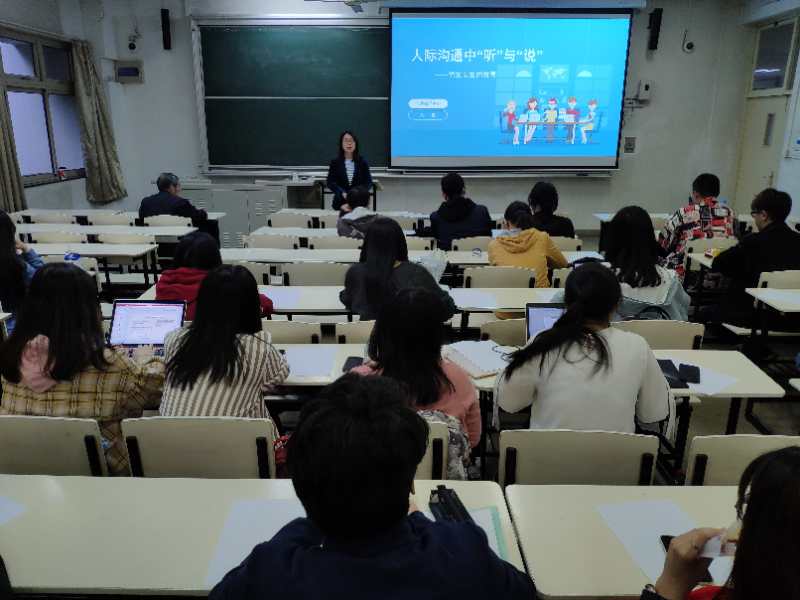 2019年5月8日晚6点,yl34511线路中心有限公司心理辅导中心朱艳老师应邀在CJ103为外语、土木两院员工开办了一场题为“人际沟通中的听与说——男女生的故事”的心理讲座。本次讲座是心理辅导中心在“春季心理健康教育风采季”系列活动中的一讲,由yl34511线路中心与土木工程系共同承办,吸引了80余名本科生参与。