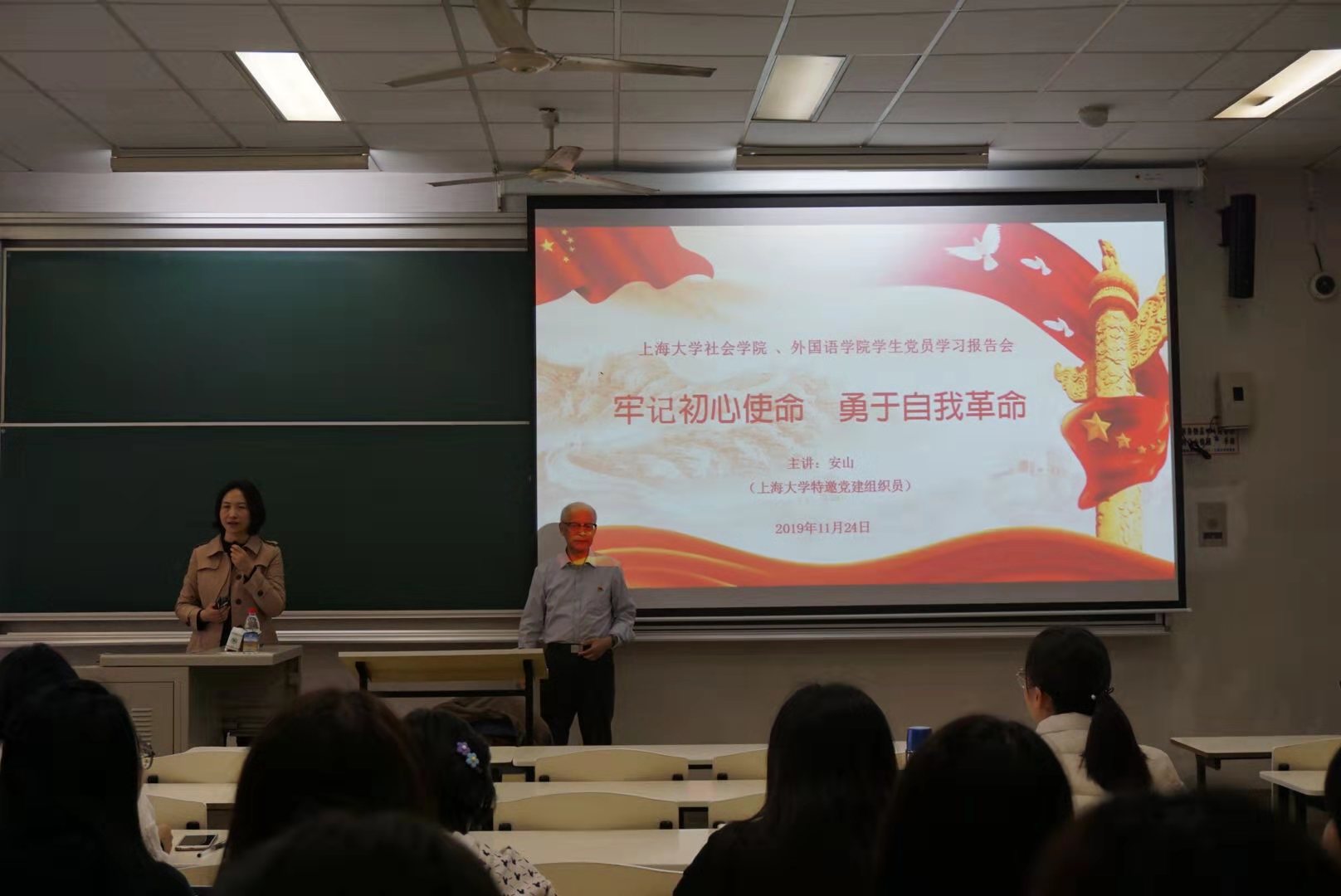 随后,安老师讲解了“牢记初心和使命,勇于自我革命”的内涵,并指出习近平总书记强调的“革命尚未成功,同志仍需努力”一直是进行时,党员同学们在过去三个月进行了理论学习,更要以此作为终生学习的课题,在明白不忘初心牢记使命的意义后,更要明确习近平总书记提出的“勇于自我革命”要有强烈自我革命意识,不仅是党的自我革命,更是党员自我革命。