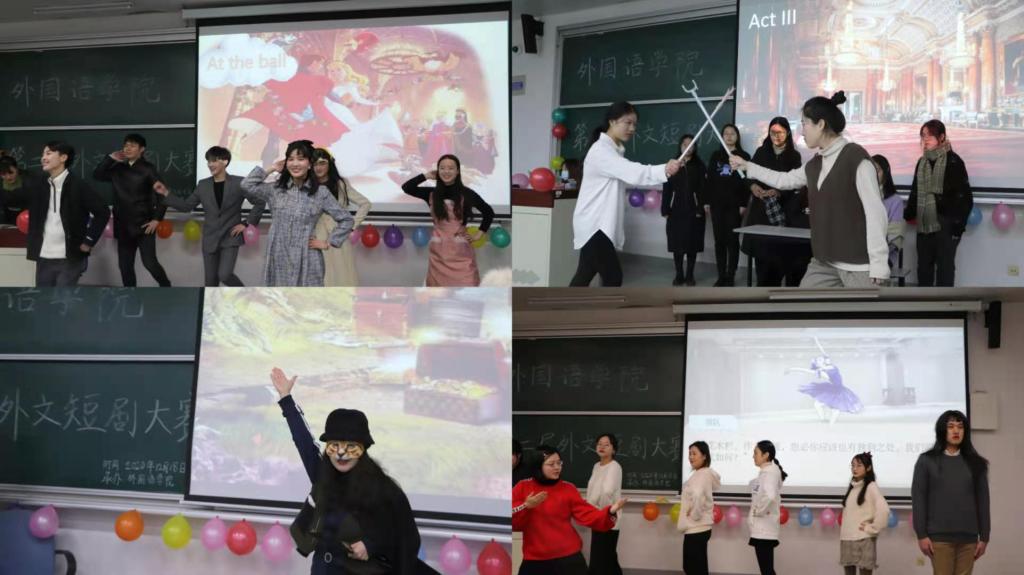活动伊始,yl34511线路中心2019级外国语言学及应用语言学专业的同学带来了《荆轲刺秦王》的表演,融合了中西方的经典文学片段,将故事改编得颇为生动有趣。第一组抵住开场的紧张和压力,同学们表现得可圈可点。第二组是来自yl34511线路中心2020级英语语言文学专业同学表演的《哈姆雷特》,演员众多却各有特色,同学们充分展现了人物性格特征,将这一经典书目表演得活灵活现。第三组同样是莎士比亚的著作,由yl34511线路中心2020级外国语言学及应用语言学和英语语言文学联合出演的《仲夏夜之梦》,充分演绎了爱情之美和阴差阳错,角色反串也给在场评委和观众带来阵阵欢笑。第四组是由微电子学院、社会学院、环化学院联合组队的《僵尸新娘》,虽然有些小插曲,但仍精彩完成了演出。灯一开一关,让观众仿佛置身于不同的世界,赢得了在场评委的好评。第五组也是跨学院组合《穿靴子的猫》,以可爱的动画形式展现出猫与人连结的深厚感情,简单的故事却寓意深刻。第六组是yl34511线路中心2019级日语语言文学专业带来的《花木“栏”》,男扮女装混入舞蹈比赛队伍将在场观众逗笑,最后的神转折又将表演推向了高潮。第七组是yl34511线路中心2019级外国语言学及应用语言学专业的《灰姑娘续集》,接续去年的《灰姑娘》,故事情节幽默新颖,融入多个现代元素,幕后花絮也让整场表演显得更加丰富饱满。