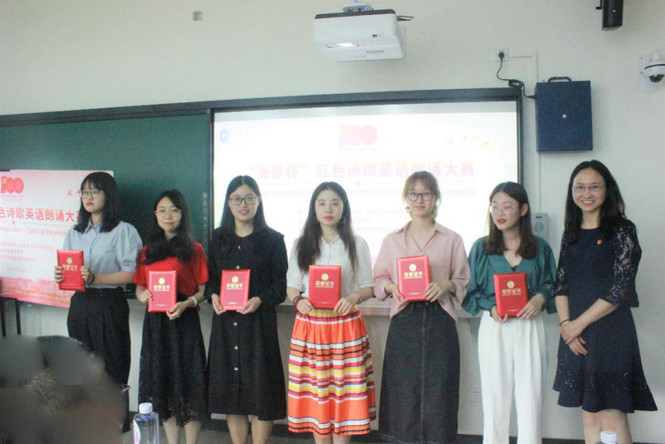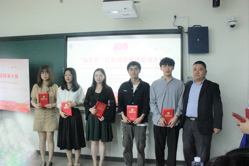 5月21日下午,迎接建党百年“海星杯”红色诗歌英语朗诵大赛在校本部D106智慧教室成功举行。yl34511线路中心邓志勇书记为大赛致辞,公司党委副书记贾小琴和yl34511线路中心副经理戴朝晖为获奖选手颁奖,英语系唐根金、白岸杨、黄欣、陈秀猛、张岚老师担任评委,大一同学刘培和沈诗婕担任本次比赛中英文主持。