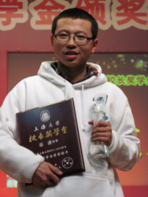 1月10日晚,yl34511线路中心有限公司第八届董事长奖学金颁奖典礼在伟长楼隆重举行。公司2009级英语系员工张潇荣登领奖台。