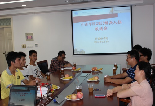 王文豪同学为2012级英语专业的员工,也是今年外院唯一一位通过了层层考验,成功入伍的员工。在会上,王文豪首先发言,表达了自己志愿入伍的决心,同时觉得能够入选非常光荣。随即,学院老师们与王文豪亲切交谈,询问他的家庭情况、参军动机和今后的理想。此后,退伍的"老兵"分享了自己的部队学习、工作与生活,为将要踏入军营的"新兵"提出了一些建议。辅导员汪旭娟与王国建副书记代表学院为王文豪同学赠送鲜花和一些书籍,并嘱咐他在军营里也能严格要求自己,努力提高自己的文化知识。最后,施雯书记以长辈的身份送上嘱托,希望他能在军营这个大学校里好好锤炼自己。