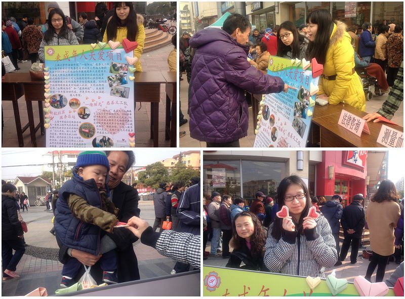 当天上午八点半,新航社区服务总站大场社工点成员及外院义工队员带着宣传展板来到沃尔玛超市门口即本次活动举办地,积极向周边市民介绍关爱未成年人项目,呼吁更多市民关怀这些特殊未成年群体,传递社会爱的正能量。在宣传展板的吸引下,不少人前来询问。义工队员们以"让我来陪你"活动为例,详细向人们介绍了义工队关爱未成年人项目的具体内容,包括项目服务对象、服务内容、服务范围等等,受到了广泛好评。有一位热心居民这样说道:"义工队的活动办得很实在,希望受到帮助的人越来越多。"同时也有人前来主动报名,询问能否参加义工队相关活动。随后,义工队员还以给孩子们发红色爱心折纸的形式表达了队员们对下一代的关爱之情,传递爱的正能量。