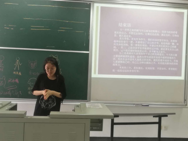 代班长金滢洁同学主持了本次团建活动。她首先用大家以往在一起的团日活动和班级集活动的照片开场,带领同学们一起回首过去一年里集体生活的点点滴滴;随后,由于恰逢教师节,同学们在便利贴上写下了对老师的深情感激和真心祝福送给专业教师。