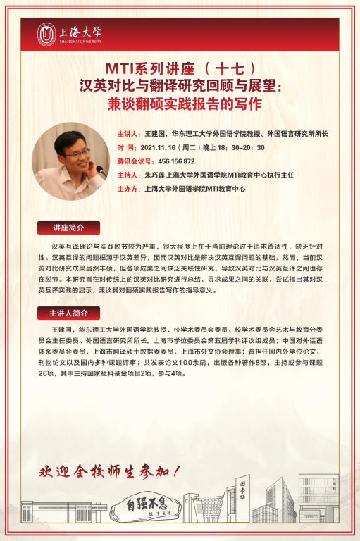 MTI系列讲座(十七) 汉英对比与翻译研究回顾与展望:兼谈翻硕实践报告的写作