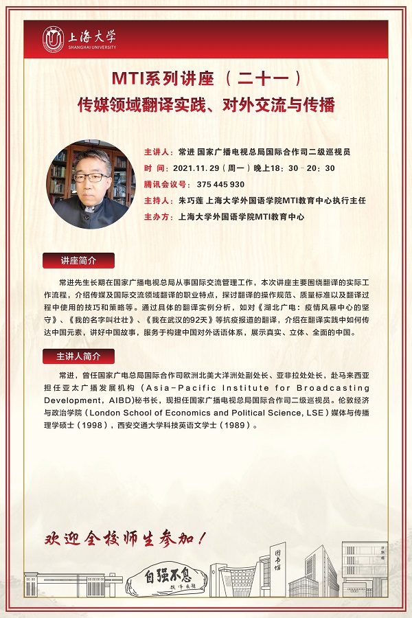 MTI系列讲座(二十一)翻译实践、对外交流与传播
